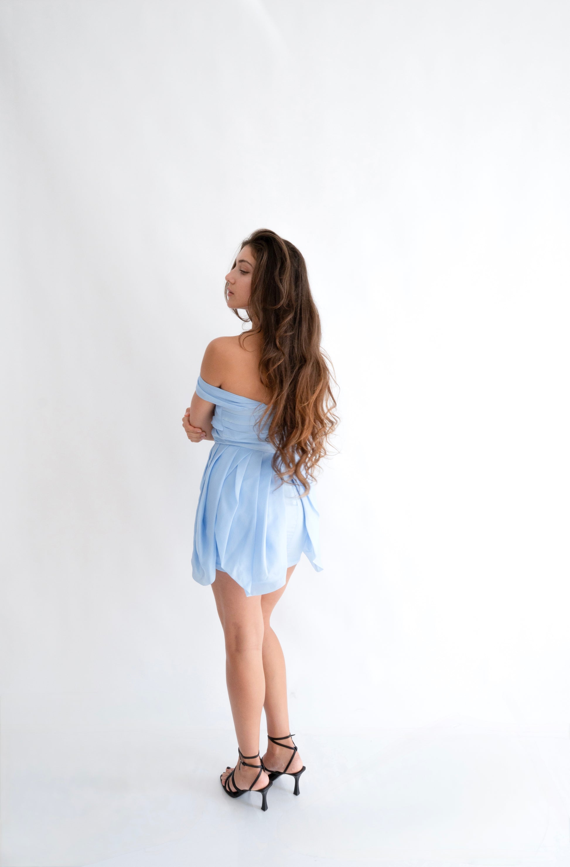 Inspirată de delicatețea și magia personajului Rapunzel, rochia “Rapunzel” în nuanța bleu pastel este alegerea ideală pentru un look de vis. Cu umerii dezgoliți și croială scurtă, această rochie emană prospețime, romantism și un strop de fantezie.