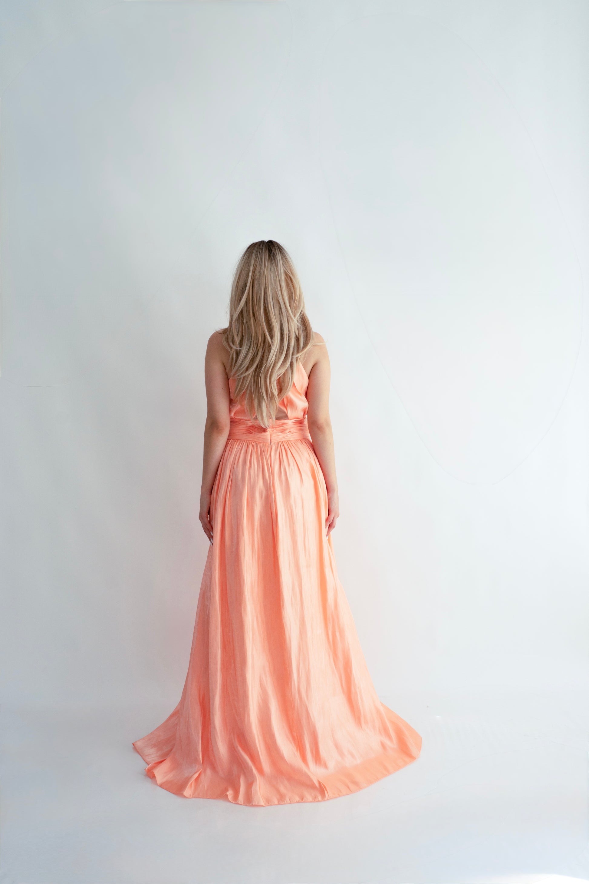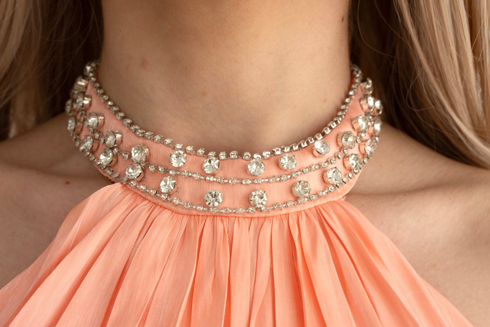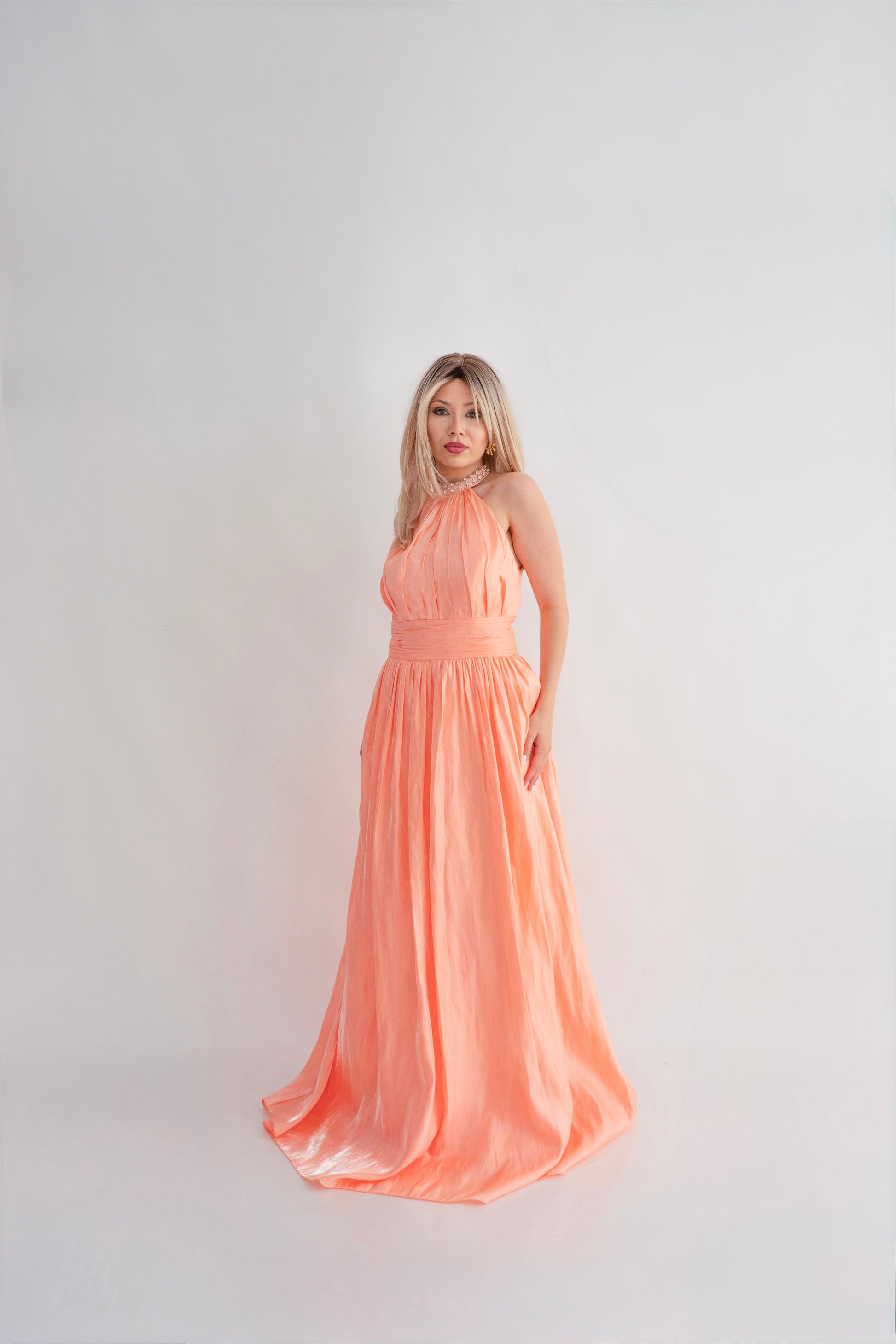 Rochie lunga nunta Halter Neck cu Strasuri – Celeste Glow (AT2) - Roz somon