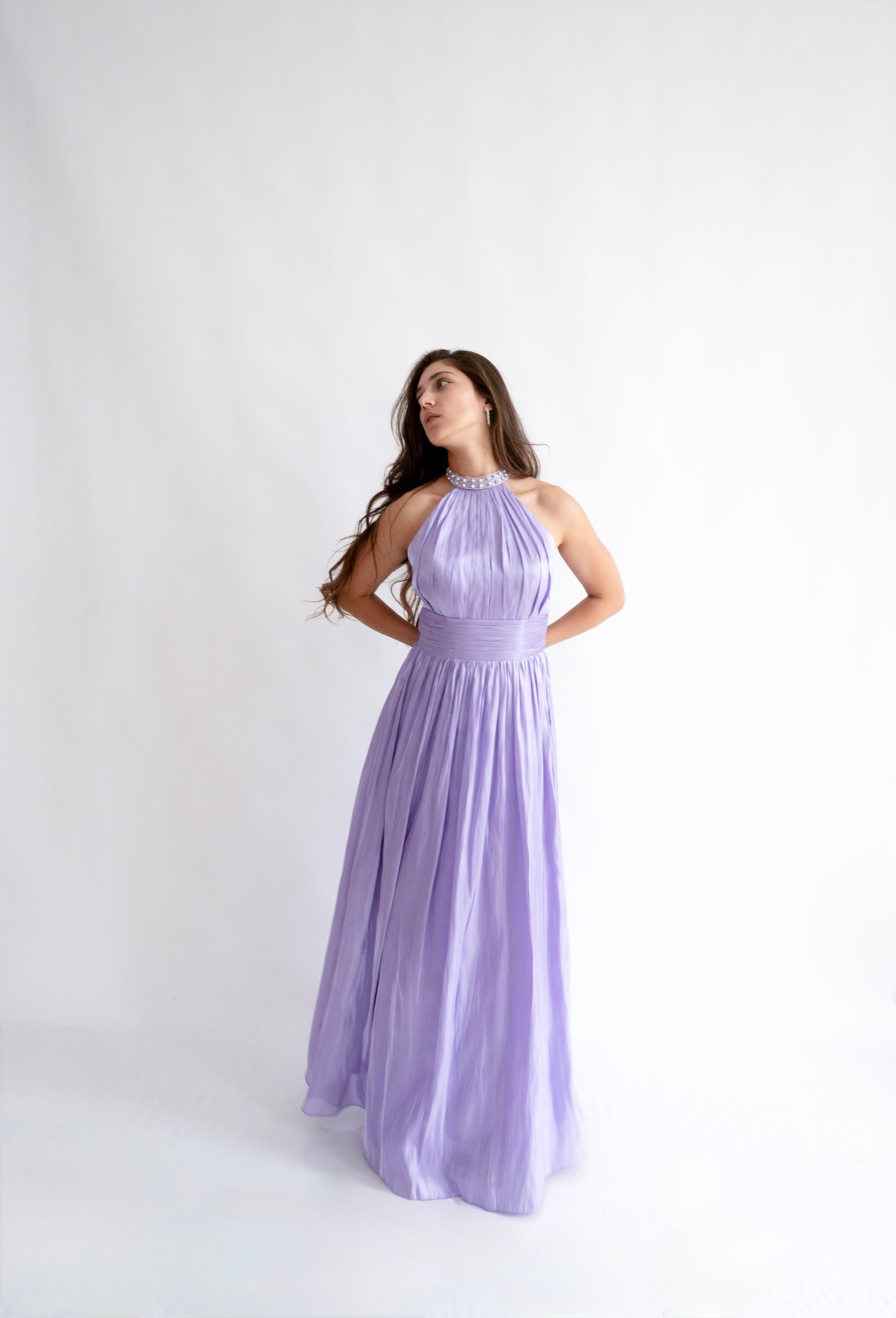 Rochie lunga nunta Halter Neck cu Strasuri – Celeste Glow (AT2) - Liliac